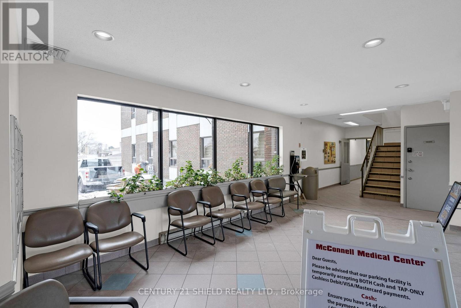 Client RemarksMcConnell Medical Centre presents an outstanding opportunity for medical and health-related businesses looking for a prime location in the city of Cornwall. Situated near the Cornwall Community Hospital, this facility presents a collaborative environment with a variety of established medical services. The convenient hospital access benefits both physicians and patients, enhancing efficiency and continuity of care On-site amenities such as a cafe and pharmacy provide added convenience for tenants and visitors alike. This space is 720 SqFt. and includes 3 private rooms, a washroom, as well a waiting and reception area. No lease required for MDs. Minimum 3-year lease, 1st month free for non MDs. (id:63033)