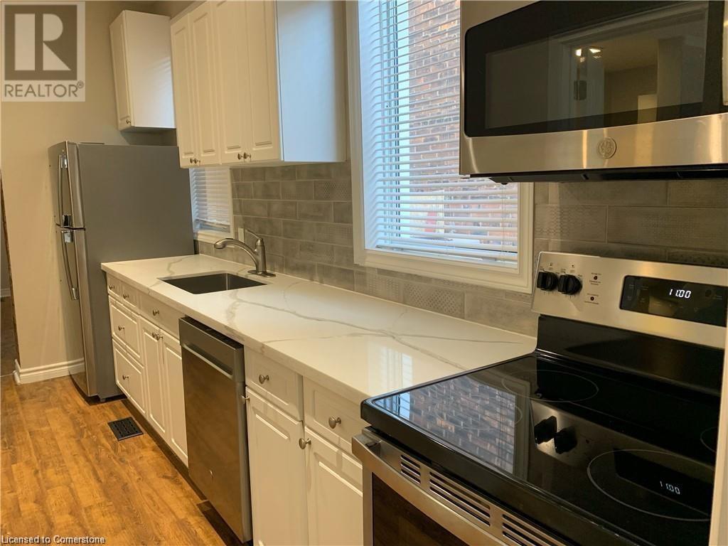Charming two bedroom apartment in an optimal Hamilton location!! Welcome to 141 Wellington Street North. This thoughtfully renovated unit is perfect for anyone looking for an urban retreat in the heart of the city. The kitchen boasts quartz countertops, stylish light fixtures, and stainless steel appliances including a dishwasher. The exposed brick combined with the hardwood flooring gives the entire apartment a sleek and modern feel while maintaining the original character and charm of the building. Both of the bedrooms offer large windows and ample closet space for storage. Enjoy the convenience of in-suite laundry and the luxury of in-unit controlled central air conditioning. Two parking spaces are included with the unit. The area features a wealth of local coffee shops, restaurants, and boutiques. King William Street's restaurant row is within walking distance, and multiple grocery options are in the immediate area as well. Local public transit is accessible steps from the building, and Hamilton's West Harbor GO Centre is just 5 minutes away. Tenant to pay hydro and 60% of gas, water is included. (id:63033)