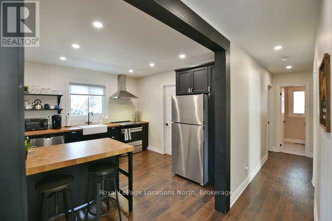 Discover this wonderful rental property nestled in the heart of Wasaga Beach, a short stroll to Beach 6. 1100 sq. ft home with 3-bedrooms, 1-bathroom. This single-level dwelling boasts vaulted ceilings and a skylight, bathing the space in natural light. Hardwood floors grace the entirety of the home, complemented by a cozy fireplace in the living room and a spacious dining area perfect for family gatherings. The updated kitchen features stainless steel appliances, cabinet space, and a convenient island. A separate laundry room adds practicality to the layout. Step outside to a picturesque backyard, complete with a fire pit and charming gazebo, ideal for entertaining guests or simply unwinding in nature's embrace. Just a short stroll away, revel in the beauty of Wasaga Beach's famed sunsets, while nearby amenities such as Superstore, restaurants, and shopping centers ensure convenience at your fingertips. Immerse yourself in the tranquility of scenic walking trails nearby. Interested tenants will undergo a screening process, including credit reports, applications, employment verification, and references. First and last month's rent required. No smoking permitted. Utilities not included. Envision your next chapter in this exquisite rental retreat. Vacant and easy to show. (id:52163)