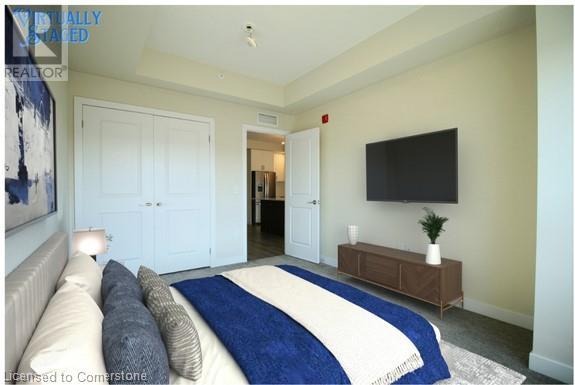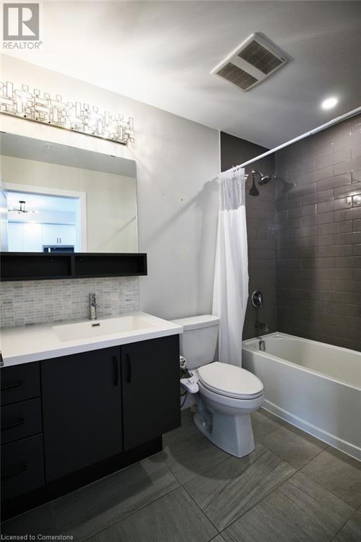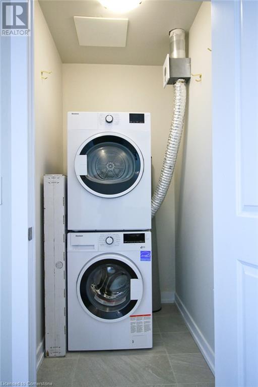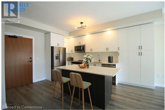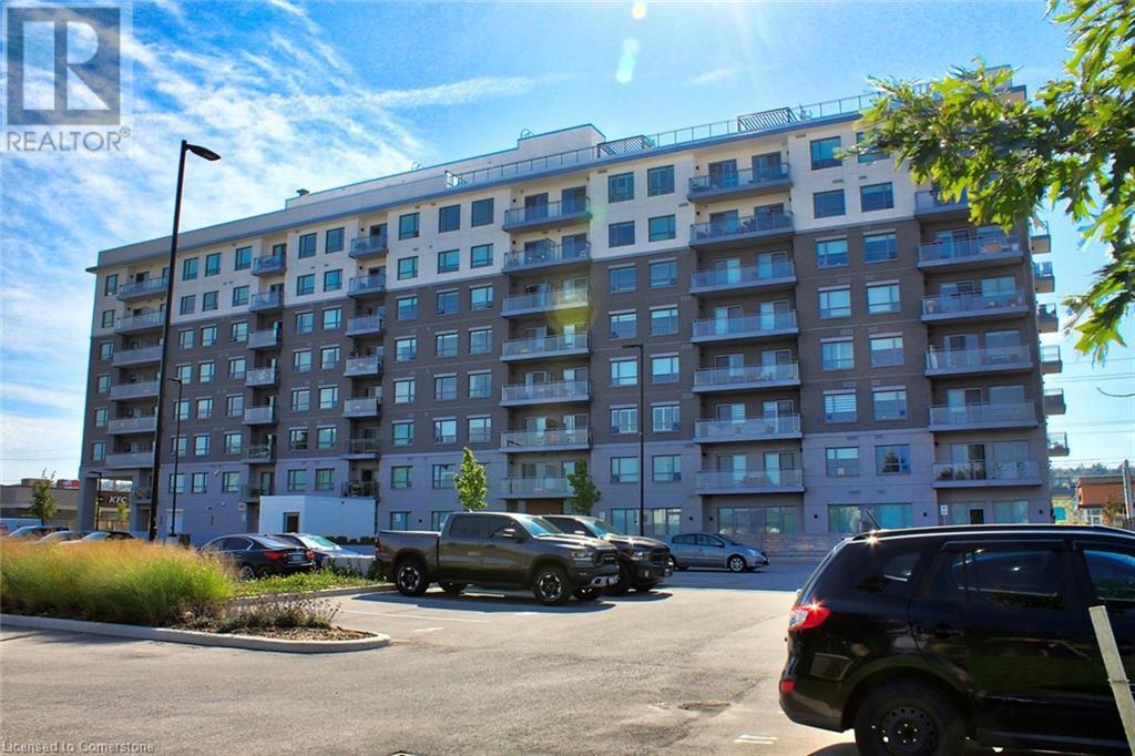 Welcome to Casa Di Torre, the perfect location for young professionals in the quaint town of Stoney Creek. All the amenities you could ever want are right at your fingertips. The building features a rooftop terrace with gazebo-style seating and stunning views of the escarpment to the south and the lake to the north. There are also fitness and yoga rooms, a party room, and a quiet social area to sit and relax. The building is centrally located on the main strip, providing easy access to shopping, restaurants, and other conveniences, as well as quick access to the QEW for trips to Toronto or Niagara. This one-bedroom unit has a balcony facing south towards the escarpment, offering a captivating view. The spacious kitchen is equipped with quartz counters, stainless steel appliances, and a breakfast island. The living room features a TV wall mount, and the bedroom is large enough to accommodate a king-sized bed. Additionally, there is in-suite stackable laundry for added convenience. Included is a storage locker #L37 and 2 parking spaces #31/51. Tenant pays hydro and water and cable/internet. Some images are virtually staged (id:63033)