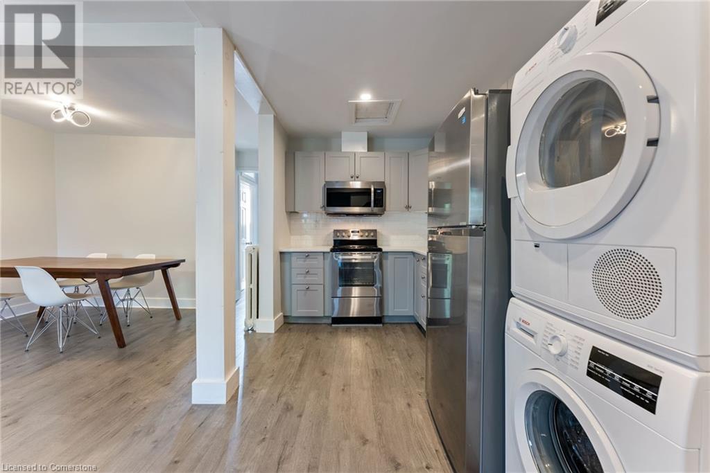 Charming and unique apartment in a historic heritage stone building on James Street South! This two bedroom boasts many unique features. With its own private entrance, you will immediately feel all of the character and unique qualities: Well-lit throughout giving you an open airy feeling. The kitchen is complete with stainless steel appliances and open concept layout, perfect for entertaining. Extras include in-suite washer & dryer, soundproofing between units, A/C and a fire escape with a second entrance and quaint balcony area. Ideal for a medical professional or young professional couple.. Conveniently located steps away from the GO station, major HSR terminal, well known restaurants, nightlife, arts and culture, and St. Josephs Healthcare Hamilton. AAA+ Tenant Only. (id:63033)