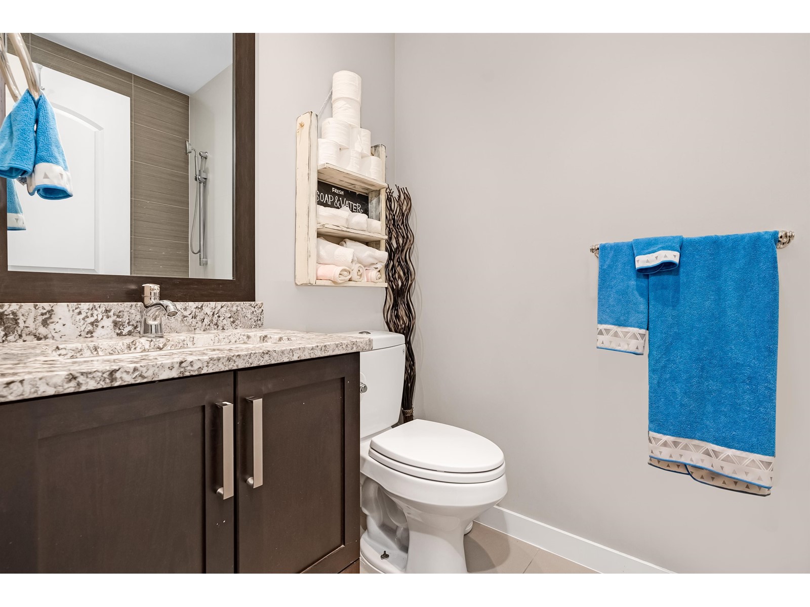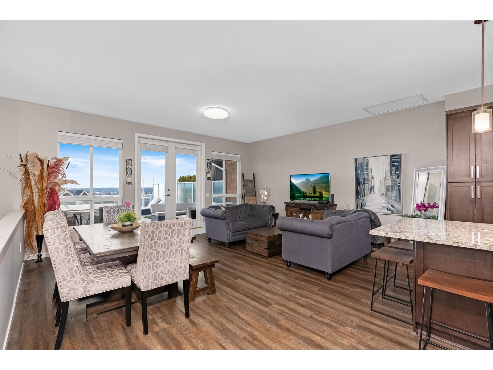 LUXURY LIVING IN WATERSTONES TOP FLOOR; 2 LEVEL-LIVING w/stairs. PENTHOUSE!THIS HOME IS A MUST SEE;FEATURING YOUR SPACIOUS 800 SQFT top floor patio w/unobstructed Panoramic views of Mt Baker and city lights! Entertain your guests in your open concept kitchen w/ large island, breakfast bar and 5 S/S appliances incl. your built in BONUS wine fridge, swirled Granite counters throughout and so much more! Unlock your French doors to your generous sized private roof top deck. Lower floor features spacious master w/ 2 closets, 5 pcensuite and 2nd balcony on the opposite side of the building facing green space. Full four pce bath as well for 2nd Bdrm and heated tile floors in both baths,. 10ftceilings, dark laminate flooring, large Foyer and full size W/D. This home will not last long! Call today! (id:52163)