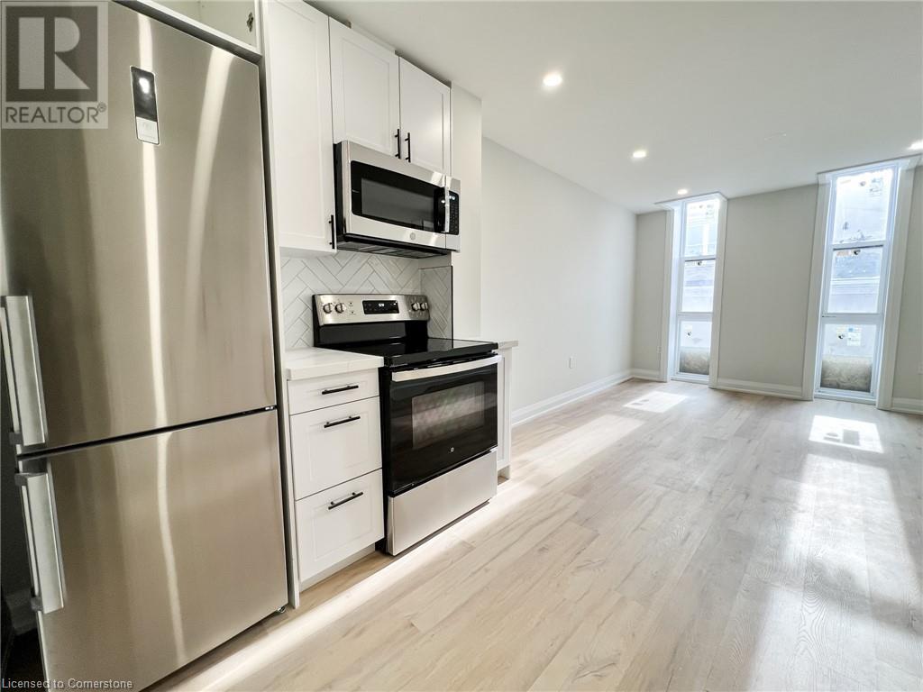 Modern Studio Apartment for Lease Be the first to live in this brand-new, never-before-occupied studio apartment! Designed for comfort and style, this space features: • Built-in appliances for a sleek, seamless look • A full 4-piece bathroom • Floor-to-ceiling windows that flood the space with natural light • High ceilings for an open and airy feel Located in a prime area, close to downtown, churches, schools, minutes from the QEW and the Centre on Barton for all your shopping needs! AND with street parking conveniently available right beside the building as well as public transit. Utilities are not included. **Offering 1 month free off a 13 month lease, 2 months free off a 15 month lease or 3 months free off a 16 month lease. Note: Select photos are virtually staged. (id:52163)