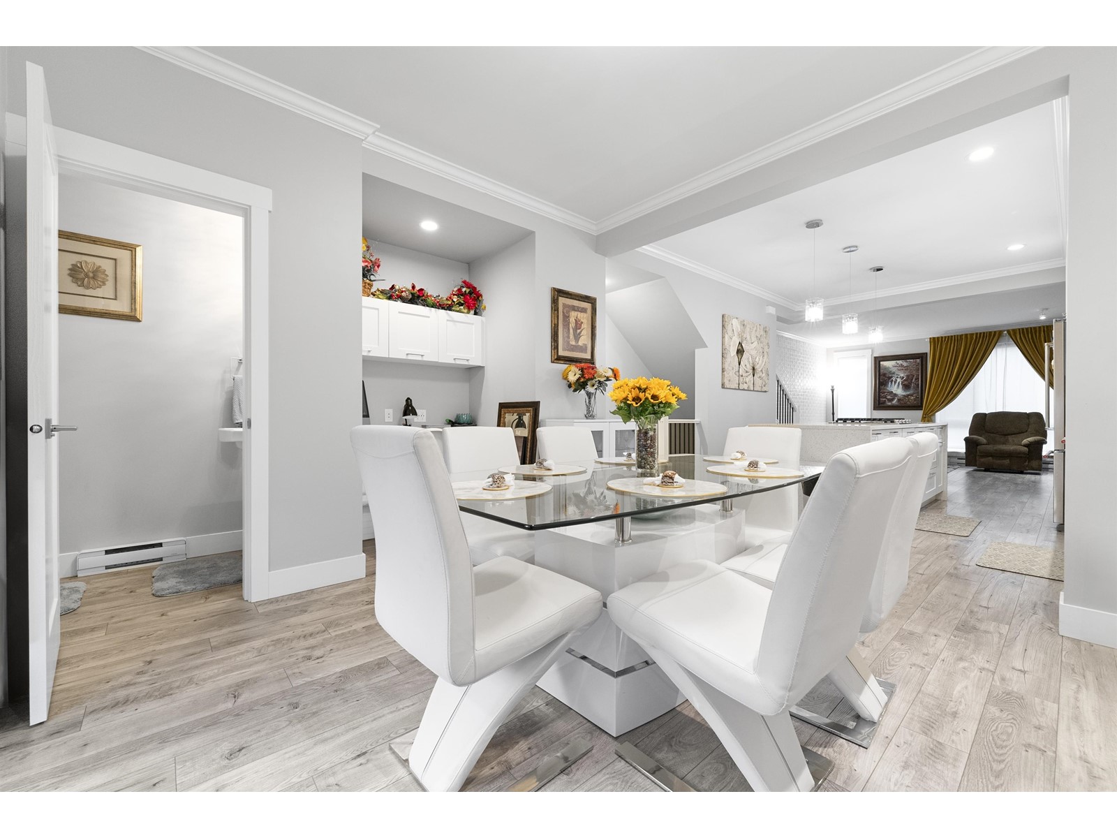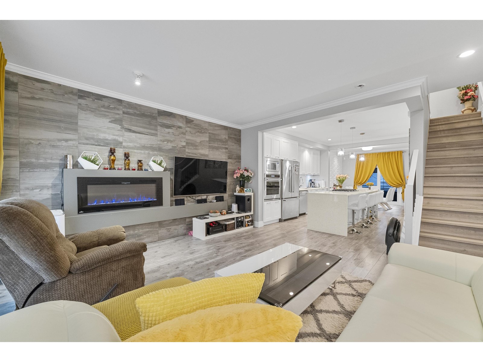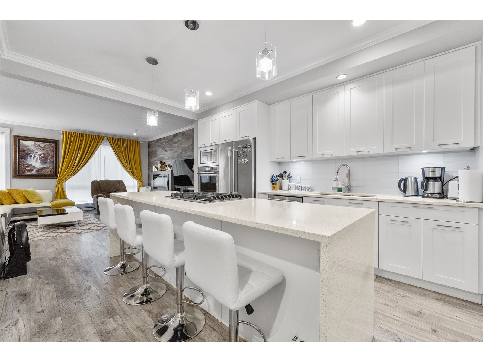 Look no further. Own this beautiful 3 bedroom 3 bath townhouse in the heart of Cloverdale. Open floor plan with 9' ceilings, crown moldings, gourmet kitchen with stainless steel appliances, oversized island with gas stove and sleek built-in downdraft hood vent. Sliding door off dining area leads to back deck with built in gas bbq hookup. 2 car garage plus storage area. Tankless hot water system. Come see it for yourself! (id:63033)