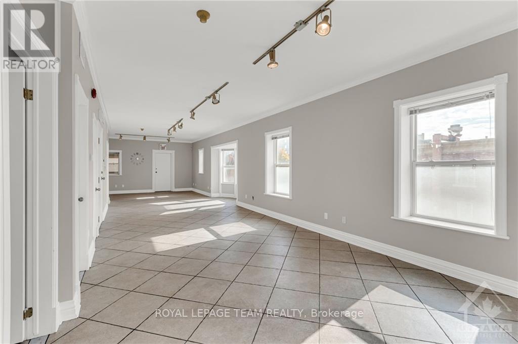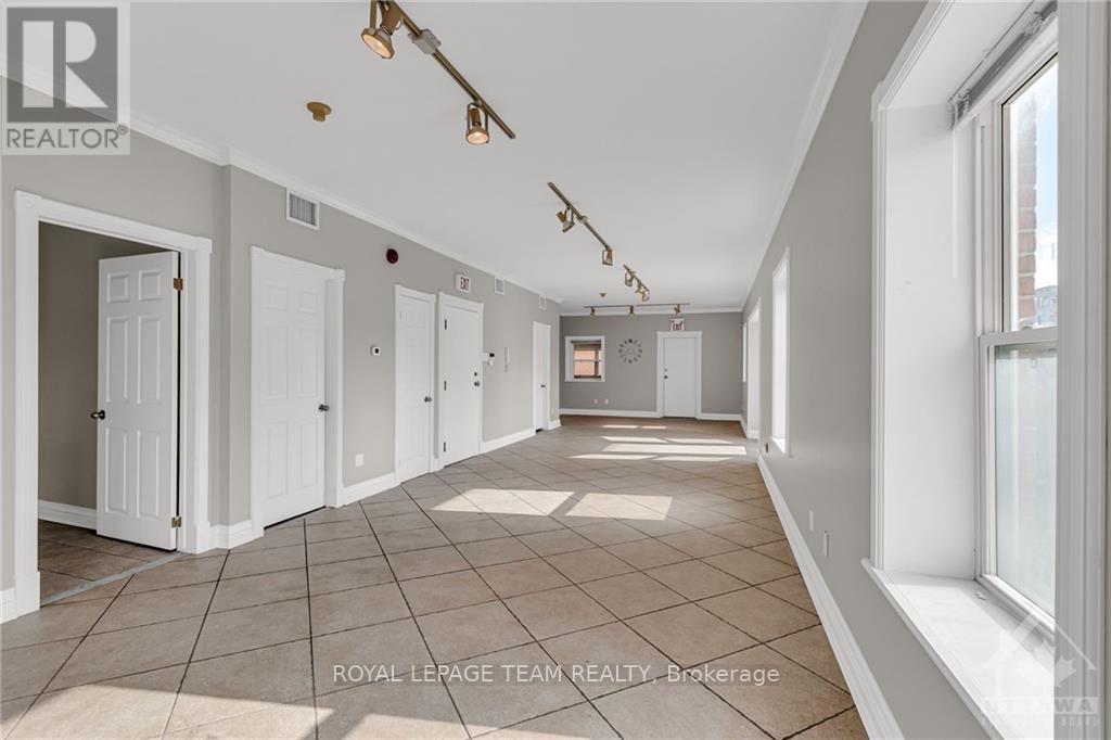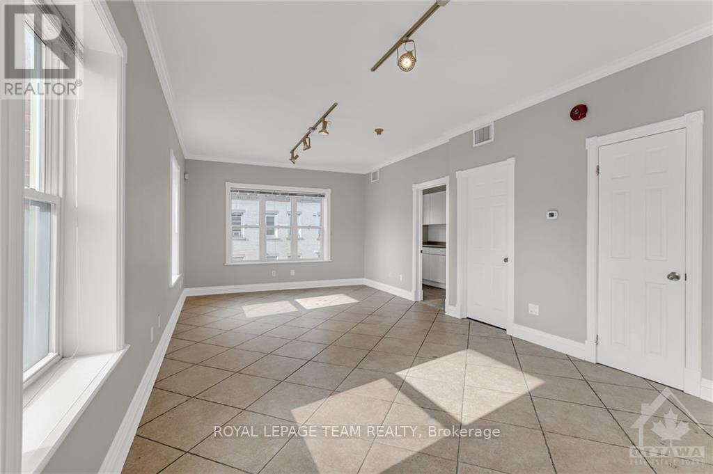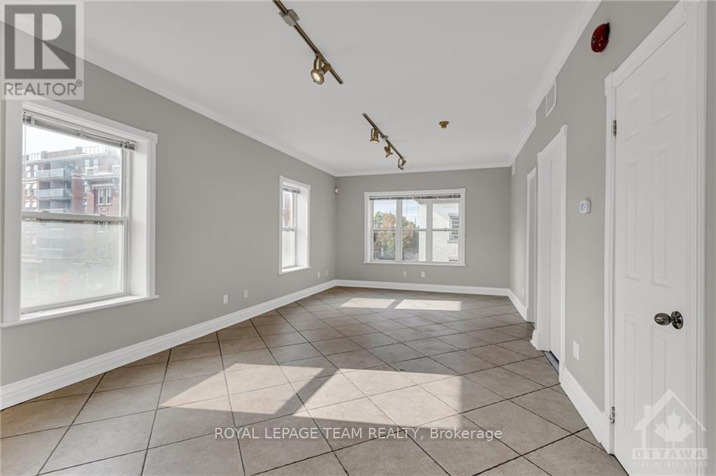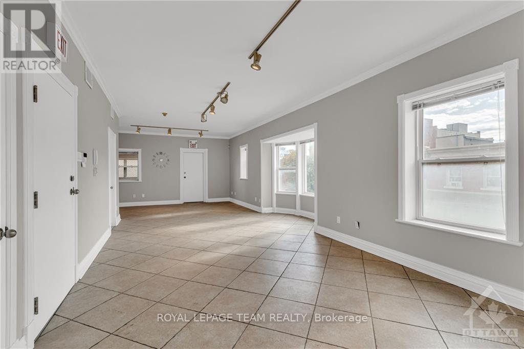 Beautifully renovated 833 sq.ft. office space on the 3rd floor, located in the heart of Centretown. This open-concept layout features large windows, allowing plenty of natural light to fill the space, complemented by 9' ceilings and elegant crown moulding. The unit includes a 3-piece bathroom with a glass shower, a convenient kitchen area, and ample storage. Ideal for professionals looking for a bright, functional workspace. Enjoy complete peace of mind with secure access, an auto-locking main door, and an intercom system to conveniently buzz in clients or guests. Parking may be available for an additional cost. Rent is $2100/month + Gas, Hydro, and HST. Situated on Bank Street, just south of Somerset, this space offers a prime location in trendy Centretown. (id:52163)