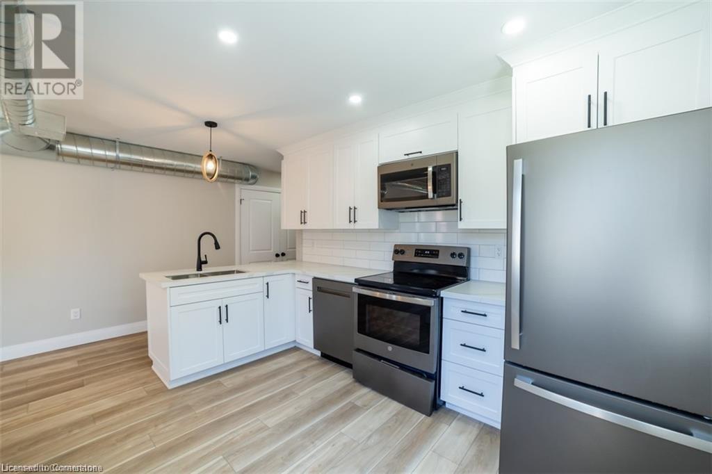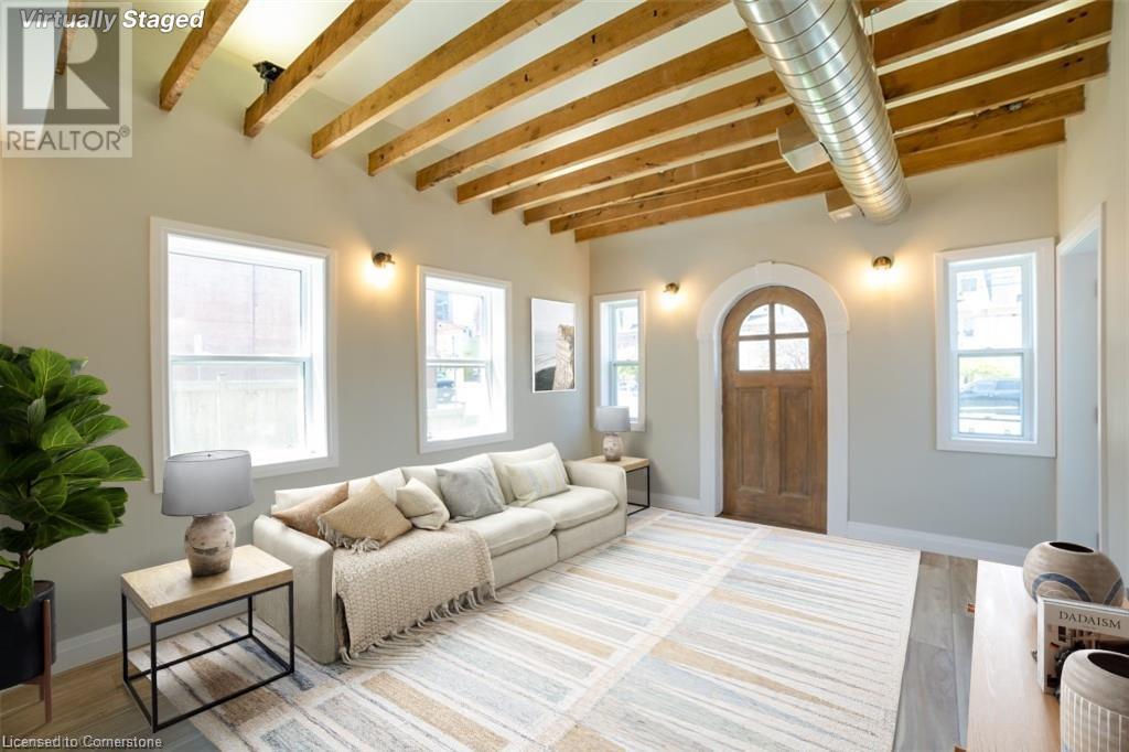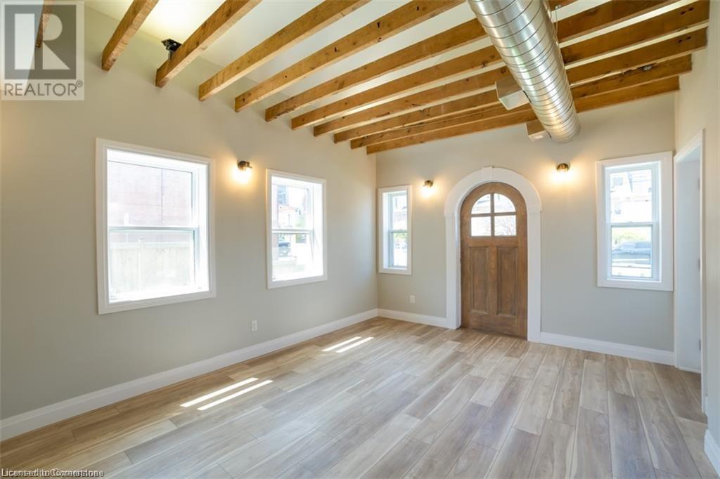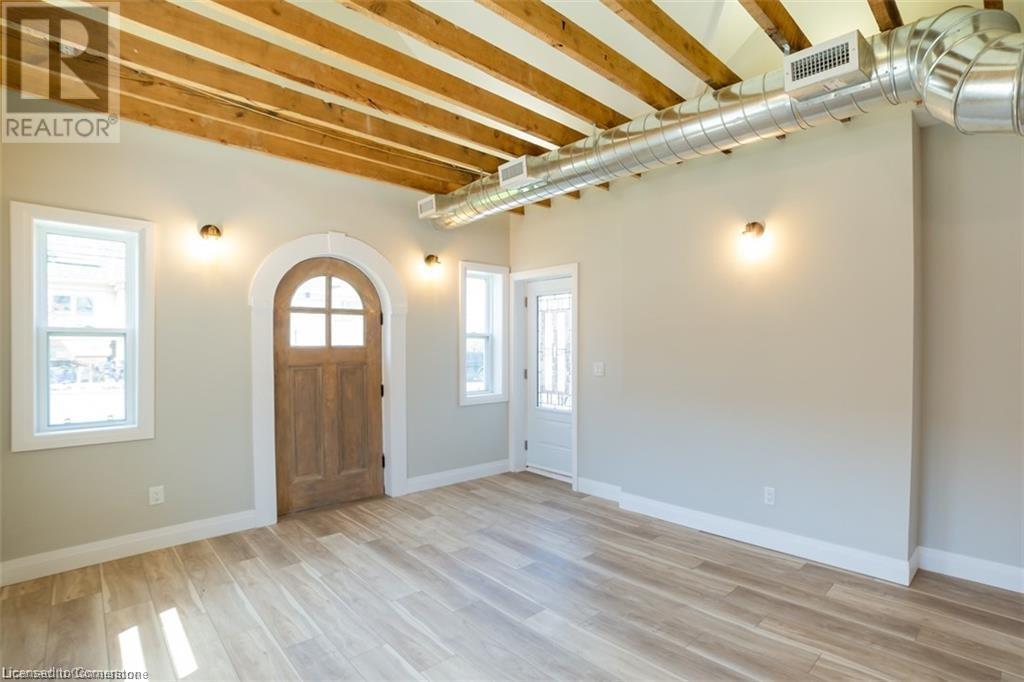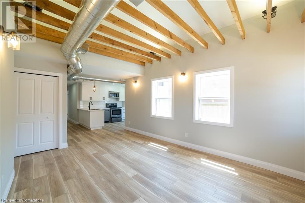 The location here can’t be beat in the hip and trendy Kirkendall neighbourhood. Welcome home to this fully renovated unit. Step inside and you’ll notice the bright, wide plank flooring that flows throughout. Look up and you’ll find beautiful exposed wooden beams, industrial light fixtures and exposed vents. The open-concept space is perfect for entertaining family and friends. In the kitchen, you’ll find white cabinets, quartz countertops, stainless steel appliances, black accents and subway tile backsplash. A kitchen that will make you want to cook up a great meal. The large, bright windows fill this unit with plenty of natural light. Good-sized bed rooms and a stunning bathroom offering an all-glass shower finishes off this unit. In-suite laundry, 1 parking spot and outdoor space make this the perfect home. Located in a prime area steps to Dundurn Castle, Locke Street shops and restaurants, easy public transportation access and close to McMaster University and highway access. (id:52163)