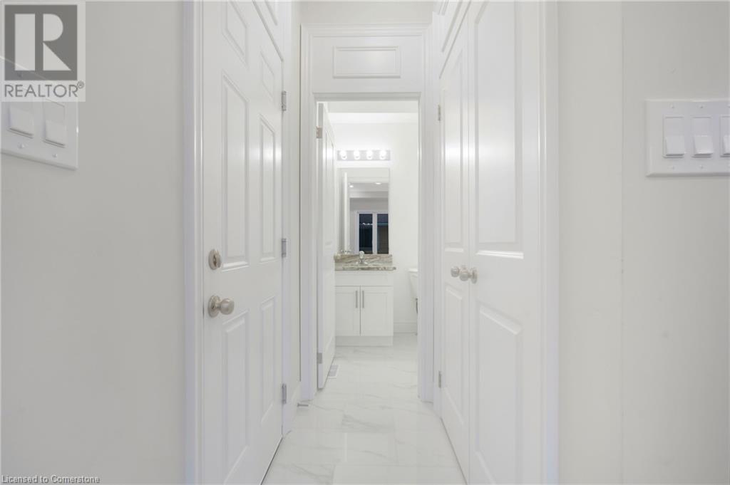 Experience luxurious living in this exquisite custom-built residence, located on Hamilton's sought-after West Mountain. This two-story home boasts a thoughtfully designed 3-bedroom, 2.5-bathroom layout. Upon entering, you'll be greeted by a grand entrance with soaring ceilings and elegant hardwood flooring, complemented by oversized windows that flood the space with natural light. The main floor features a 9-foot ceiling and an open-concept design. The stunning oak staircase is a centerpiece of the home, while the gourmet kitchen is equipped with granite countertops and seamlessly flows into a cozy living area complete with a gas fireplace. Convenience is key with a second-floor laundry room and a separate side entrance to the basement, offering potential for additional living space or a private suite. The property includes a 1-car garage with inside entry, providing ease and security. Situated on an oversized lot, this home offers ample outdoor space with convenient access to schools, shopping, highways, and more. (id:52163)