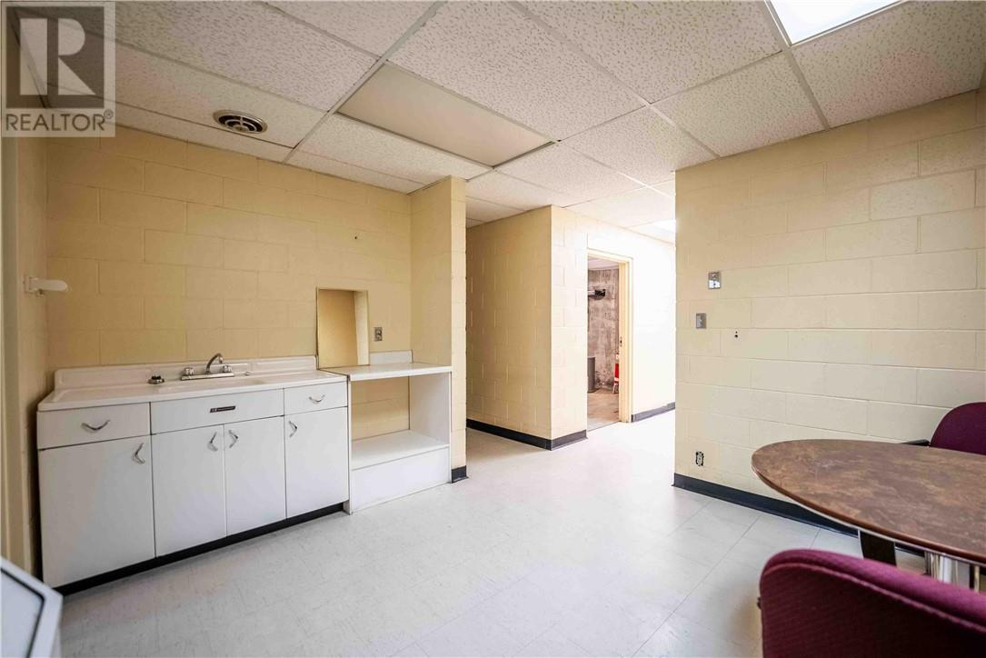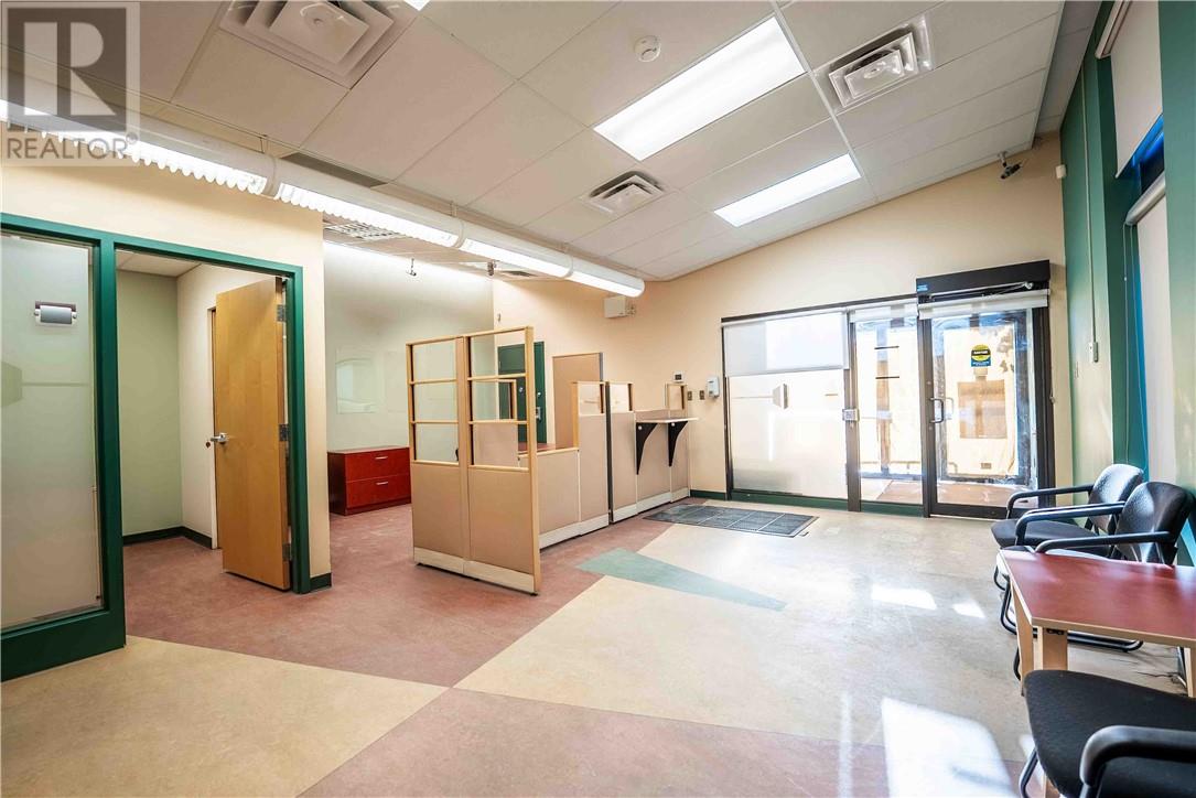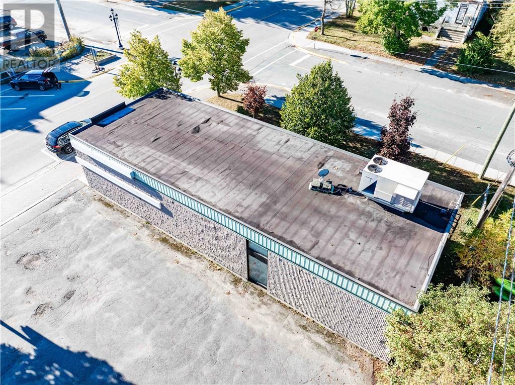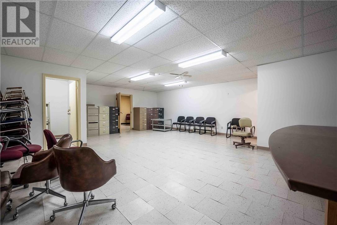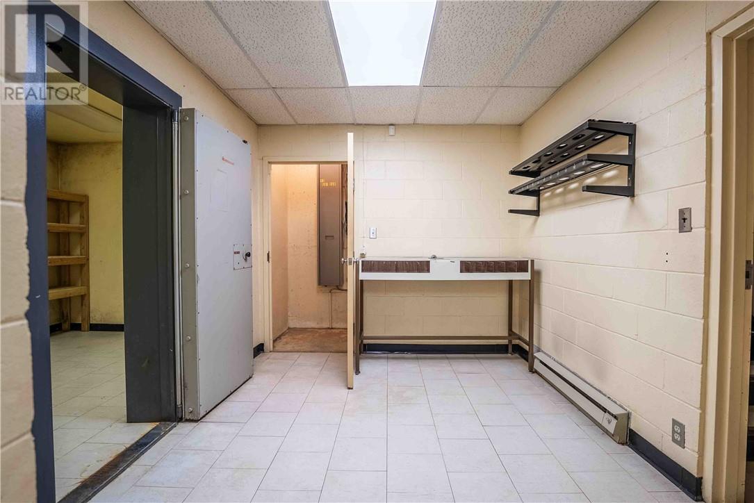 This 1,722 sq.ft. commercial building, formerly the Caisse Populaire Desjardins, is configured for professional office or retail use and is ideally suited for single-tenant occupancy. The main floor features a vestibule, customer service area with teller counter, open office space, central corridor with rear entrance, four private offices, a small administration area, storage space, a vault, and a cubicle area. The fully finished basement includes a large conference room, staffroom with kitchenette, two 2-piece washrooms, a spacious storage room and closet, a second vault, IT closet, and a utility room housing the main electrical distribution equipment and additional storage. (id:63033)