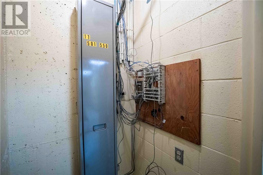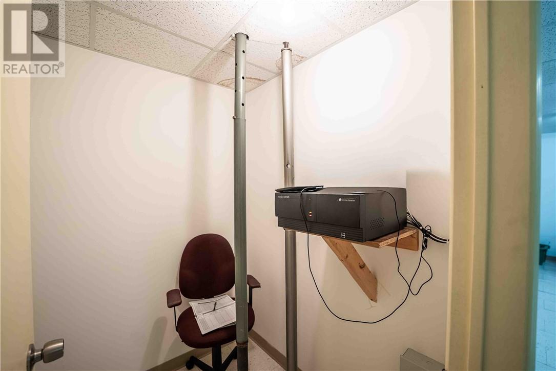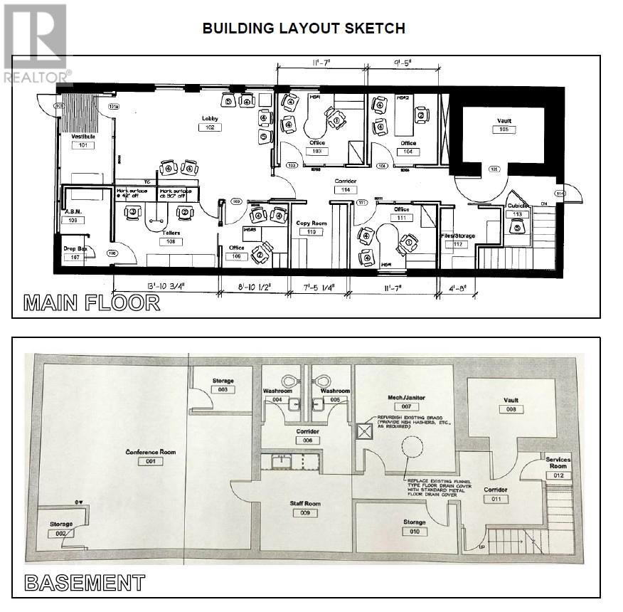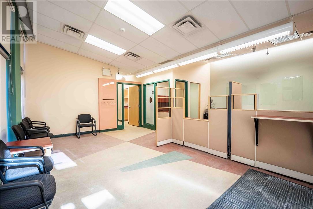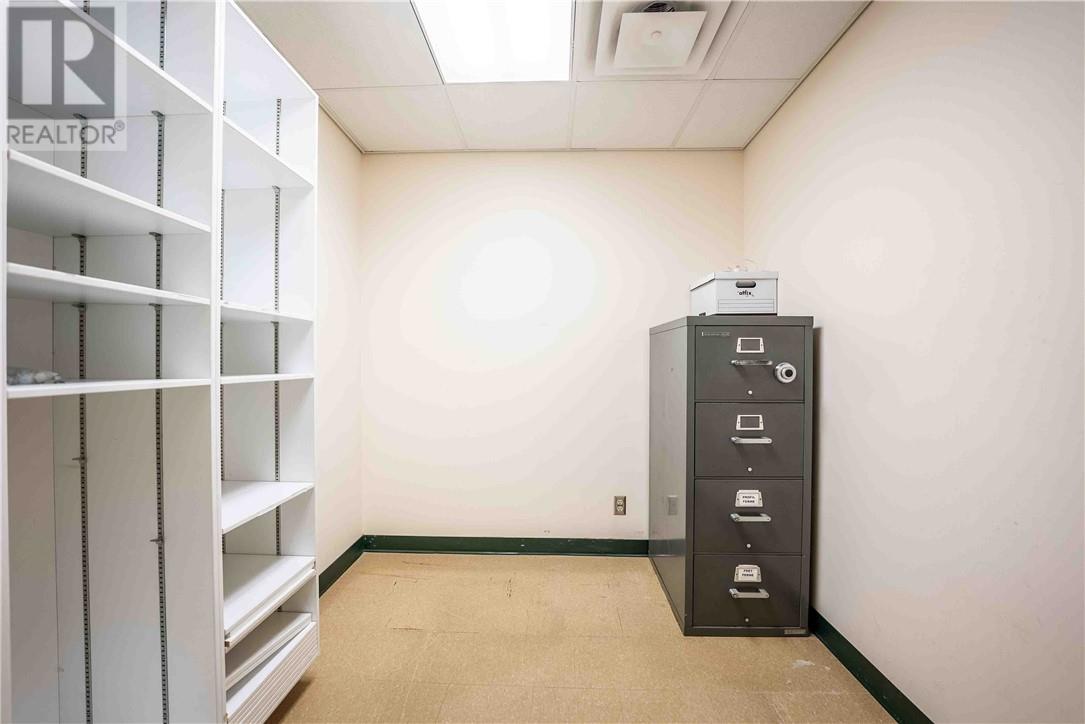 This 1,722 sq.ft. commercial building, formerly the Caisse Populaire Desjardins, is configured for professional office or retail use and is ideally suited for single-tenant occupancy. The main floor features a vestibule, customer service area with teller counter, open office space, central corridor with rear entrance, four private offices, a small administration area, storage space, a vault, and a cubicle area. The fully finished basement includes a large conference room, staffroom with kitchenette, two 2-piece washrooms, a spacious storage room and closet, a second vault, IT closet, and a utility room housing the main electrical distribution equipment and additional storage. (id:63033)