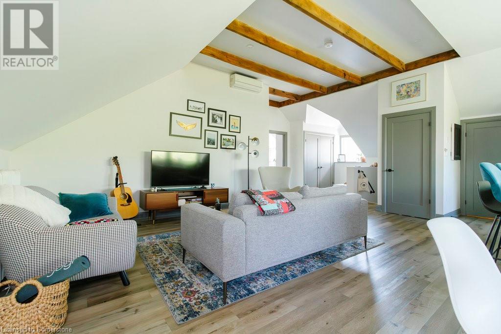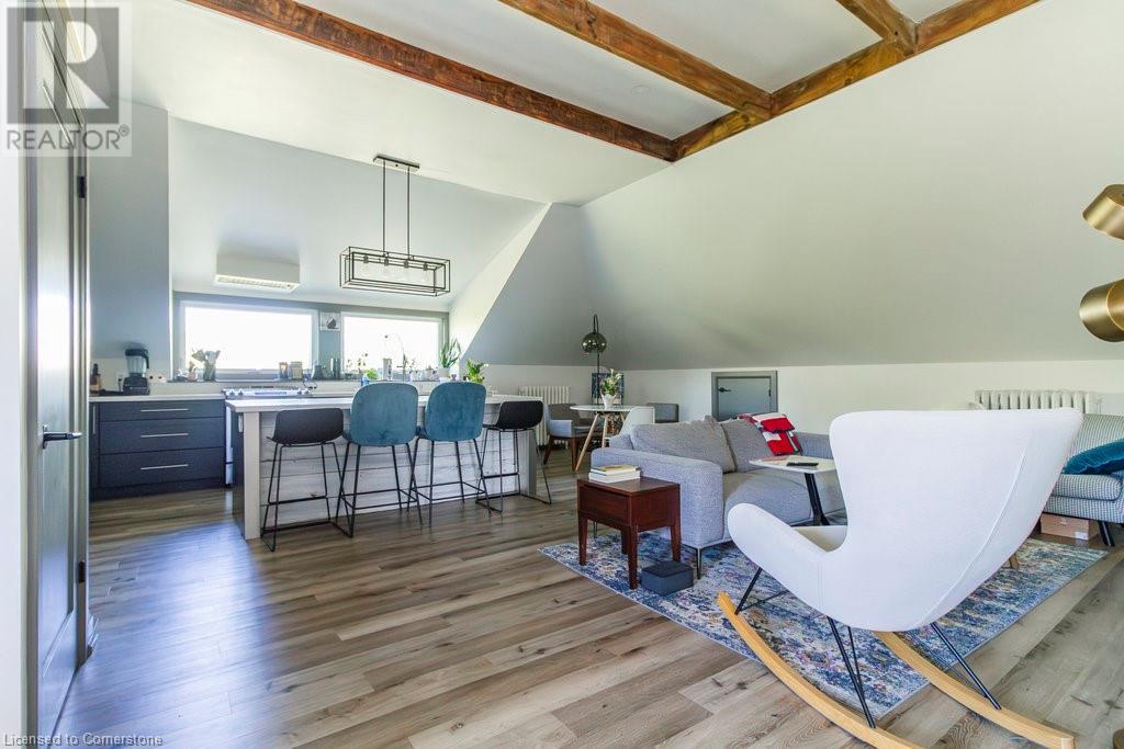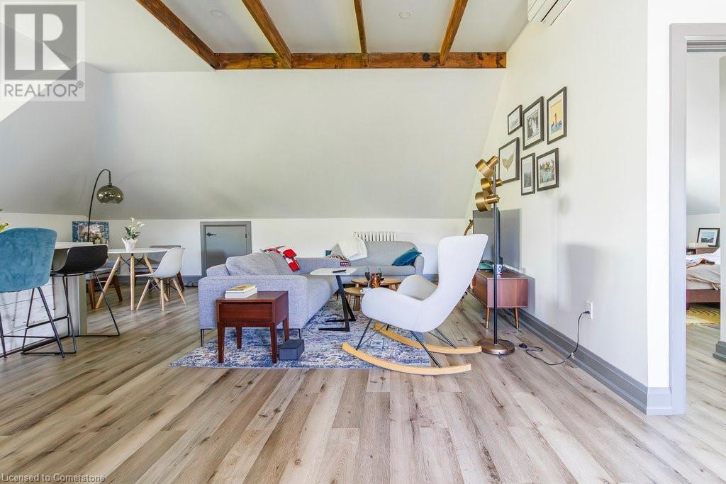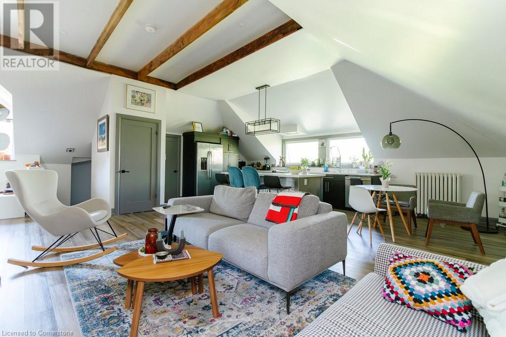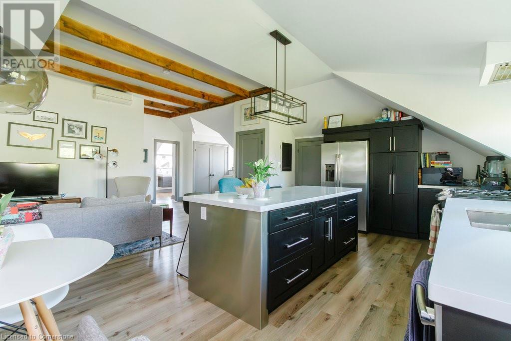 Welcome to this stunning 1,200 sq ft executive loft, ideally located in the highly sought-after Kirkendall neighbourhood—perfect for professionals working at St. Joseph’s Hospital or in the downtown core. Meticulously maintained, this unit showcases 11-foot vaulted ceilings, original exposed beams, and an abundance of natural light, blending character with modern elegance. The spacious open-concept layout features a contemporary kitchen with stainless steel appliances, an 8-foot quartz centre island, walk-in pantry, and dishwasher—perfect for entertaining or relaxed day-to-day living. Both bedrooms are generously sized and include walk-in closets. Additional highlights include a large four-piece bathroom, in-suite laundry, and no upstairs neighbours for enhanced privacy and tranquility. Enjoy unbeatable convenience just steps from St. Joseph’s Hospital, Locke Street shops and dining, the Hunter Street GO Station, the Augusta Street restaurant district, and all that downtown Hamilton has to offer. Street parking is available at no cost. Tenant is responsible for hydro and the internet. This is urban living at its finest—schedule your viewing today. (id:52163)