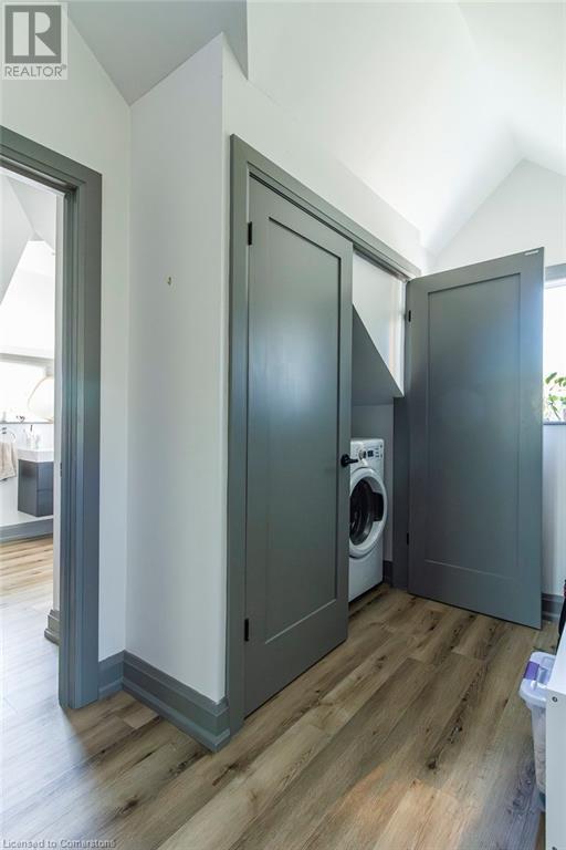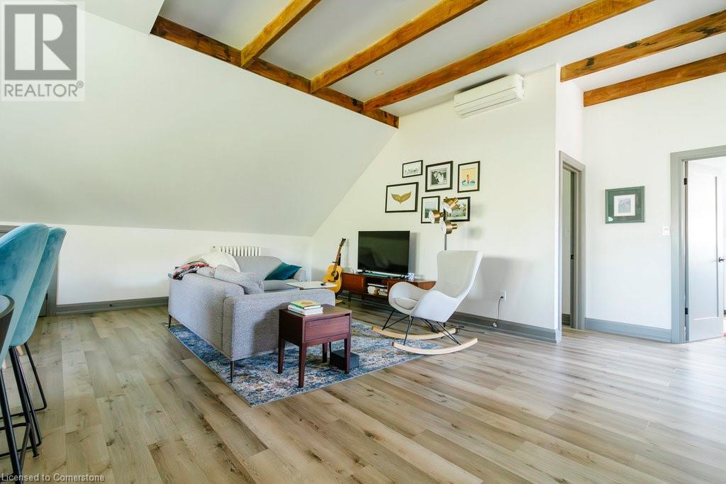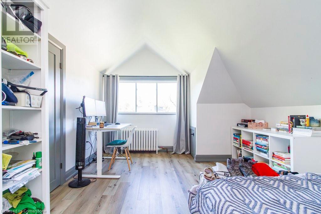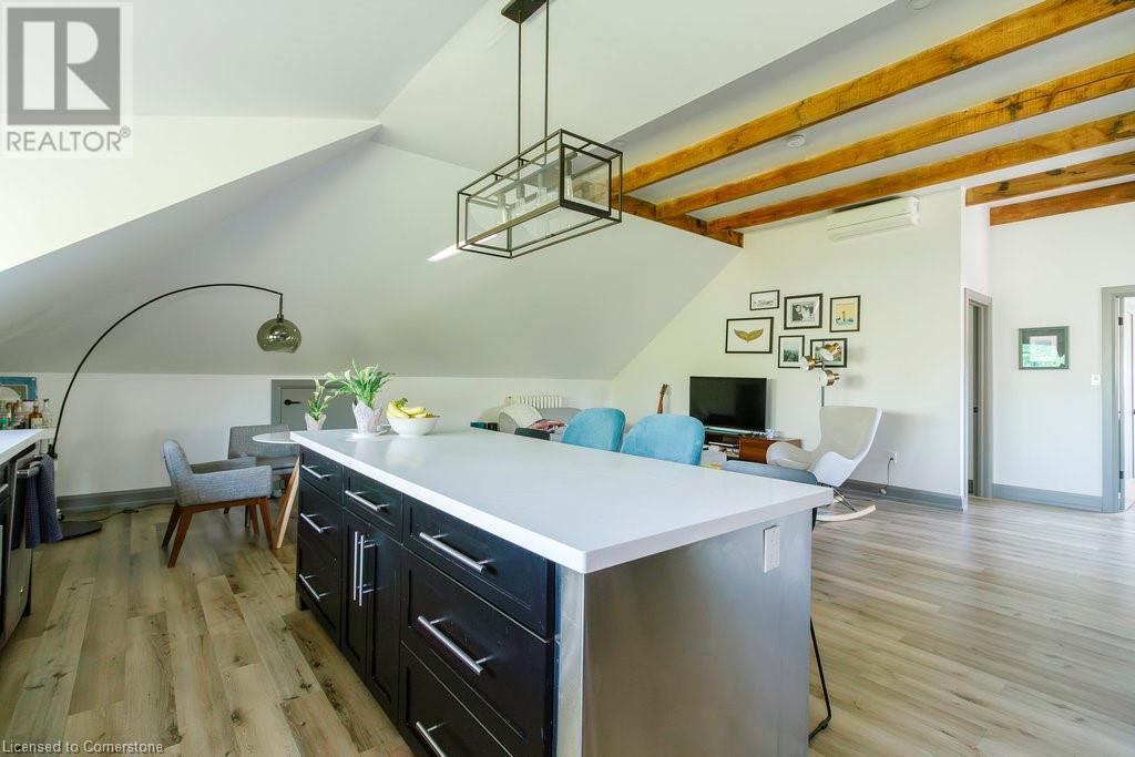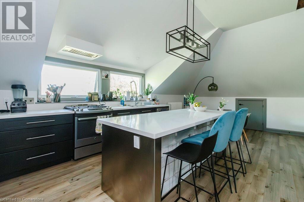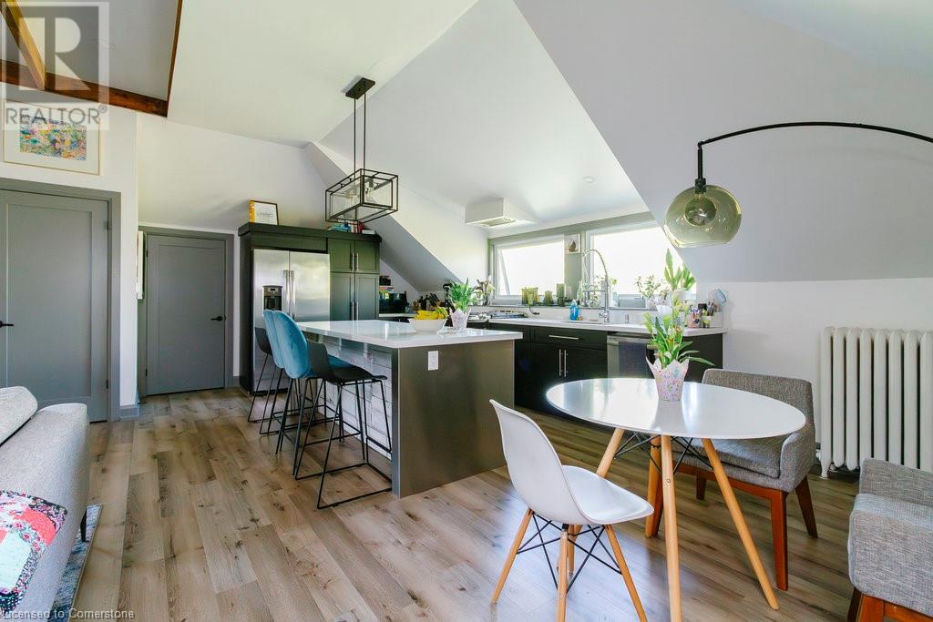 Welcome to this stunning 1,200 sq ft executive loft, ideally located in the highly sought-after Kirkendall neighbourhood—perfect for professionals working at St. Joseph’s Hospital or in the downtown core. Meticulously maintained, this unit showcases 11-foot vaulted ceilings, original exposed beams, and an abundance of natural light, blending character with modern elegance. The spacious open-concept layout features a contemporary kitchen with stainless steel appliances, an 8-foot quartz centre island, walk-in pantry, and dishwasher—perfect for entertaining or relaxed day-to-day living. Both bedrooms are generously sized and include walk-in closets. Additional highlights include a large four-piece bathroom, in-suite laundry, and no upstairs neighbours for enhanced privacy and tranquility. Enjoy unbeatable convenience just steps from St. Joseph’s Hospital, Locke Street shops and dining, the Hunter Street GO Station, the Augusta Street restaurant district, and all that downtown Hamilton has to offer. Street parking is available at no cost. Tenant is responsible for hydro and the internet. This is urban living at its finest—schedule your viewing today. (id:52163)