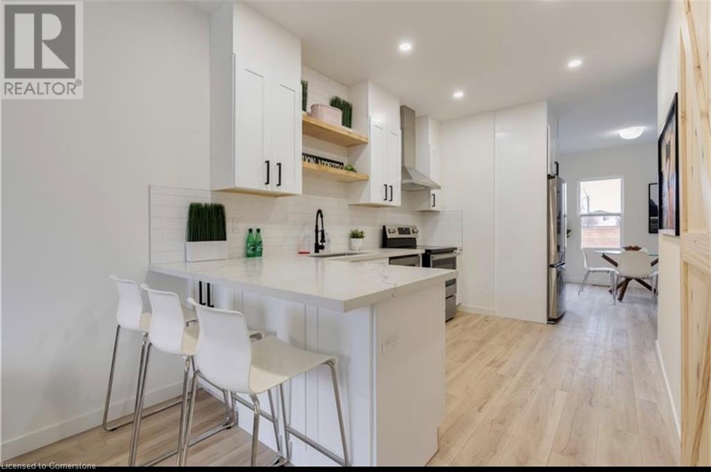 This stunning, completely renovated from top to bottom is the perfect blend of luxury, comfort, and modern convenience. With a fully finished basement, and a charming backyard ideal for gatherings, BBQs, or peaceful evenings, its an entertainer's dream. Inside, you'll find two bedrooms, two bathrooms, and a versatile finished basement with two den-style rooms perfect for a home theater, yoga studio, office, or additional sleeping space. The expansive dining room boasts a stylish retro-inspired accent wall and is filled with natural light from the backyard. Upstairs, the two bedrooms share a beautifully appointed bathroom. The home Includes updated laundry and two designated parking spots. This home truly combines elegance, space, and practicality. (id:52163)