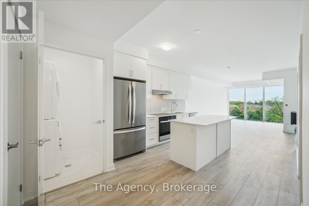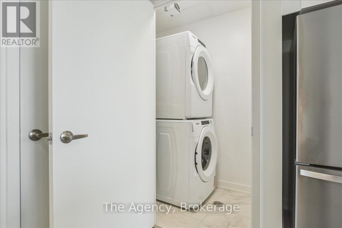 Discover sophisticated living in the heart of Clarkson Village with this brand-new, never-lived-in condo at the S2 Luxury Condominium Residence. Ideally located at the corner of Southdown Rd. and Lakeshore Rd., just steps from Clarkson GO Station, this 789 sq. ft. unit (+58 sq. ft. private balcony) features a spacious 1 bedroom + den layout, perfect for both relaxed living and entertaining. The semi-ensuite bathroom includes a soaker tub and a separate marble-tiled shower. The generously sized bedroom offers two large closets, while the open-concept living area showcases durable laminate flooring, large windows with unobstructed south-facing views, and modern finishes, including an electric fireplace.The chef-inspired kitchen is outfitted with quartz countertops, full-height cabinetry, a central island with bar seating, and high-end stainless steel appliances, including an induction cooktop. Additional features include in-suite laundry with a full-size washer and dryer. The unit also offers individually controlled heating and A/C, with high-speed internet (via Rogers SmartHomes system) and water included.With unbeatable access to shopping, dining, parks, and the waterfront, plus easy connections to the QEW and GO Train, this location offers it all. Building amenities include 24-hour concierge/security, fitness centre, indoor pool, whirlpool, yoga studio, party room, and a rooftop BBQ area with wraparound terraces for seamless indoor/outdoor entertaining. The unit comes with one underground parking space equipped with an EV charger and a storage locker.The rent covers water, and internet; however, the tenant is responsible for personal heat, hydro usage, any internet or video service above what is provided, all EV charges, and any usage fees related to common amenities. (id:63033)