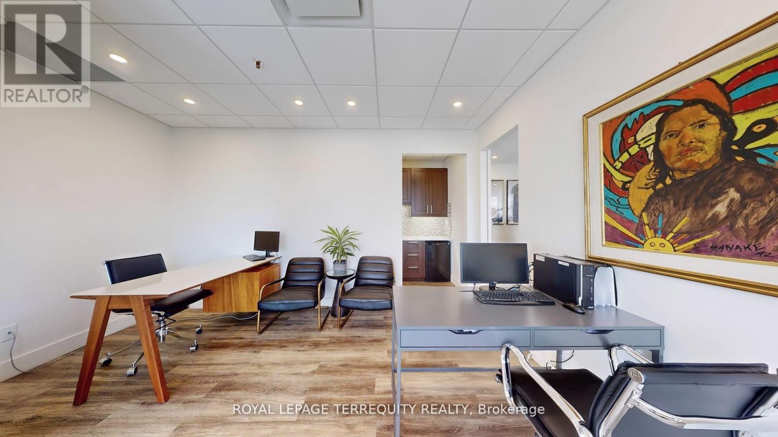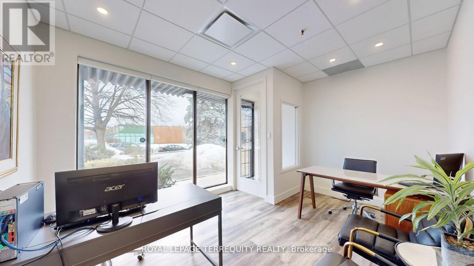 All-inclusive gross rent just pay for utilities!! This beautifully renovated, modern commercial space offers the perfect blend of style, functionality, and visibility. Located on the main floor with direct, stair-free access, the unit features excellent street exposure, ample parking, with two parking spots right outside the door. Inside, you'll find a bright and spacious office with abundant natural light, a welcoming reception area, a convenient two-piece washroom, and a compact kitchenette. Situated in a prestigious business park, you don't want to miss the rare offering! Gross monthly rent includes TMI. Flexible lease terms available from 12 to 24 months or longer! (id:63033)