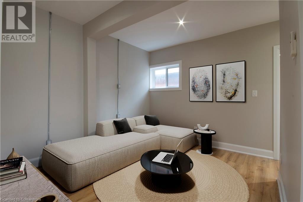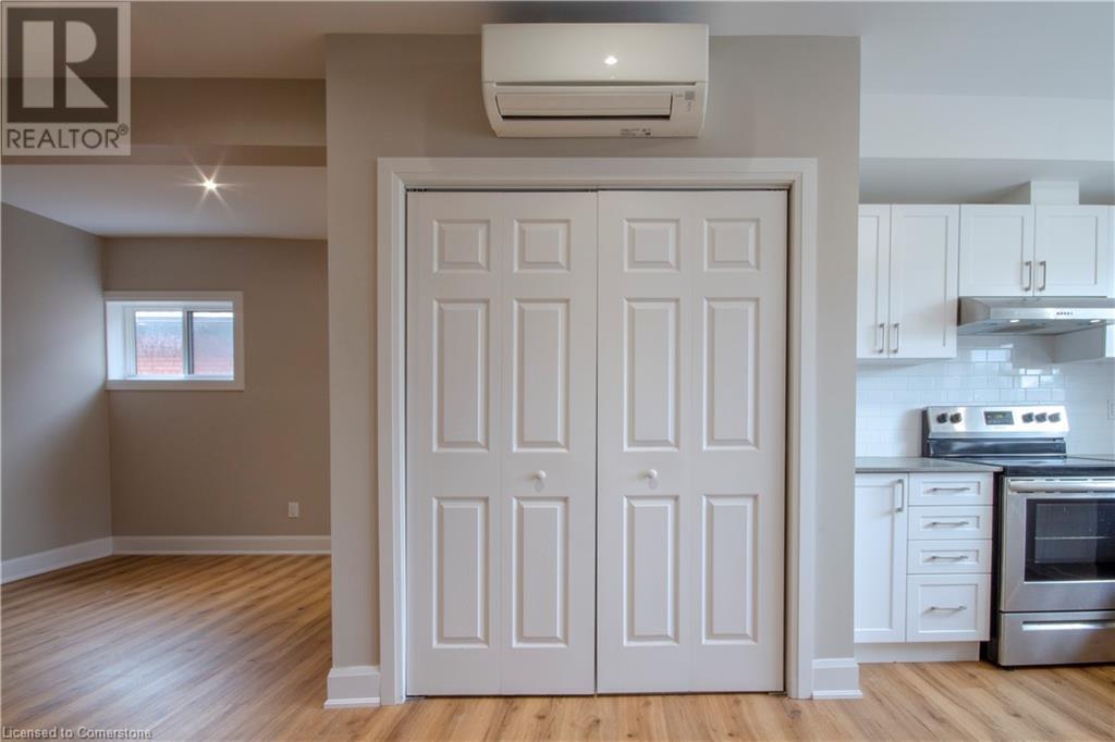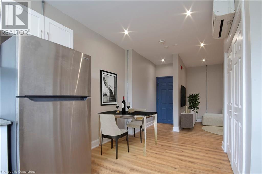 This updated 1-bedroom unit is located in the heart of downtown Hamilton, offering unparalleled convenience with close proximity to transit, shops, restaurants, and more. The unit features luxury laminate flooring throughout, providing a sleek and modern look. The kitchen boasts stone countertops and stainless steel appliances, including a dishwasher, ensuring both style and functionality. The 4-piece bathroom is elegantly designed, and each unit comes with its own in-unit heating and cooling controls for personalized comfort. Additionally, the convenience of an in-unit washer and dryer makes laundry a breeze. The living area features a cozy gas fireplace, perfect for relaxing evenings. Residents can also enjoy a fantastic courtyard area, ideal for soaking up the sun on bright days or enjoying the pleasant evenings. Utilities are extra. (id:63033)