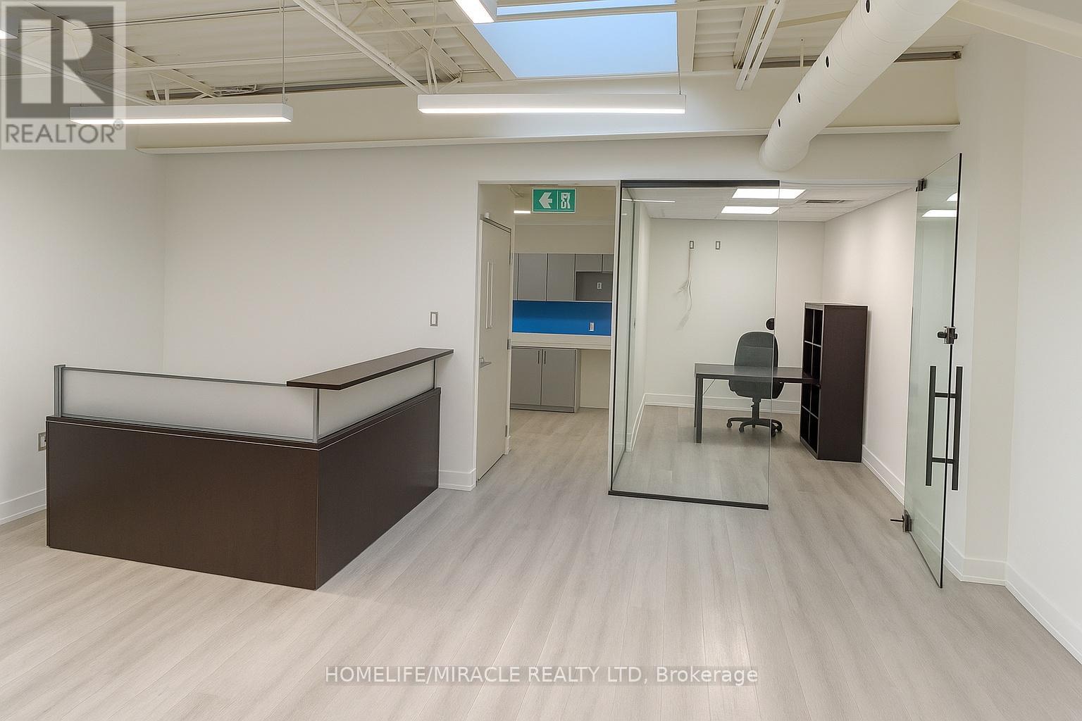Welcome To locate your business in a prestigious location of Toronto where 4 cities meet each other Vaughan/Brampton/Mississauga & Toronto. Total 554 Square feet of office space on the second level of industrial Unit # 1. Immediately available for lease in a great business & industrial location of Toronto. Easy access to all major Hwy's : 427/407/400/401. Great for any type of office use like Real Estate, Lawyers, Architects, Training Institutions, On line Trading Business etc. Brand new fully renovated unit constructed in 2025. Move in ready condition. Very clean and bright, freshly painted, Kitchen & washroom included. Ample of parking in the plaza. Fully surveillance Camera & security system installed inside & outside of the Unit. Fully furnished with office desks & chairs included in the rent price. Benefit of a high ceiling on the second level makes more attractive with sky light on the roof. Freshly painted with LVT flooring installed with a wax coating makes your unit appearance professional. (id:63033)