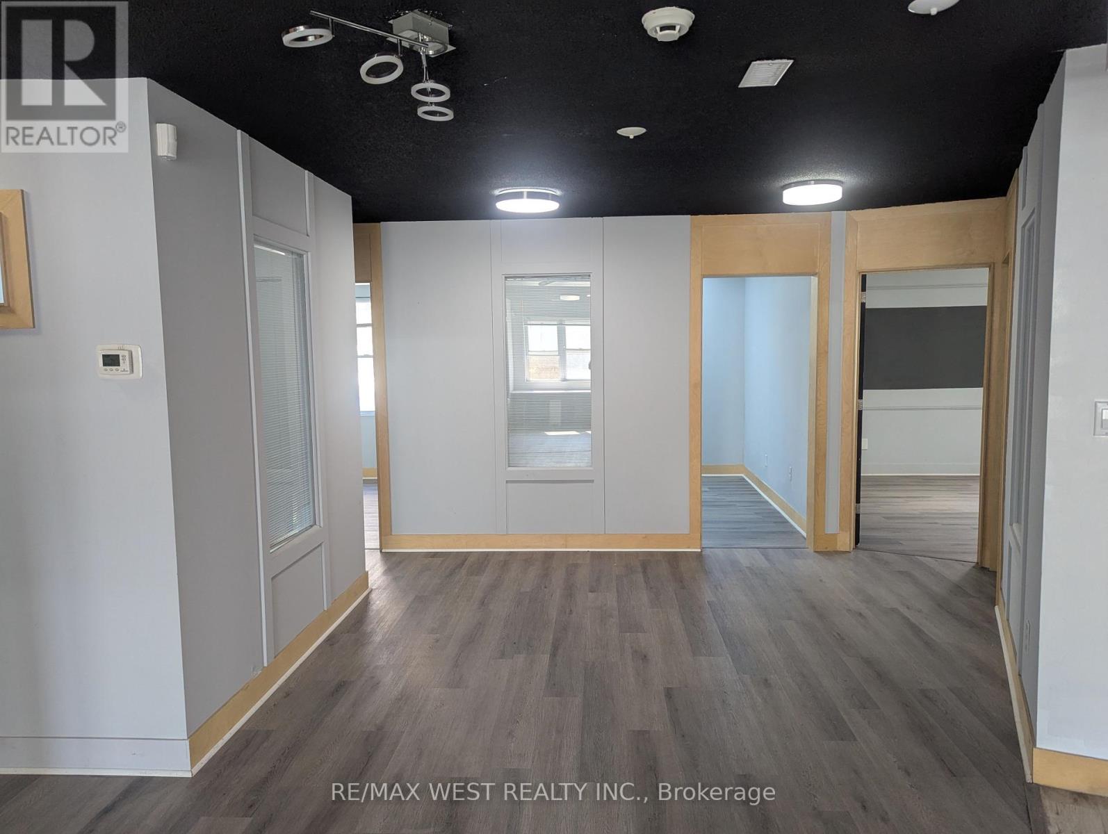 Immaculate upper floor office space located steps to Downtown Oakville. Recently renovated and updated vinyl flooring throughout. Excellent layout with 5 private offices, 1 boardroom, 1 reception area and 1 shared open office space. Includes one 4-piece washroom with shower/tub, kitchenette with fridge. Bright windows throughout the space. (id:63033)