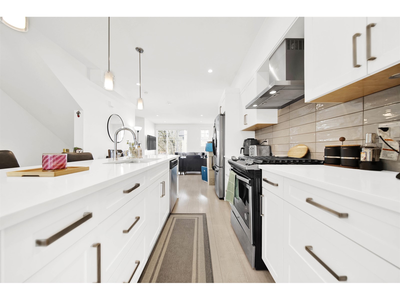 Welcome to STERLING, a beautiful corner unit townhome offering 3 bedrooms and 3 bathrooms, perfectly situated in a serene natural setting. The property features a spacious tandem garage with enough room for two cars and extra storage. Inside, you'll enjoy elegant 9-foot smooth-painted ceilings that enhance the home's sophistication. Upstairs, discover three generous bedrooms and two full bathrooms, including a primary suite with a large walk-in closet. Located just a 2-minute walk from Tim Hortons, a pizza shop, a shopping plaza, the Bell Centre Grounds, and Sullivan Heights High School, convenience is right at your doorstep. (id:52163)
