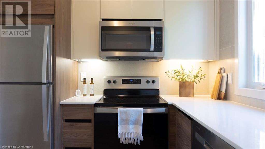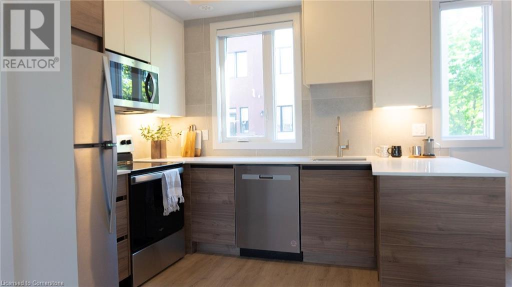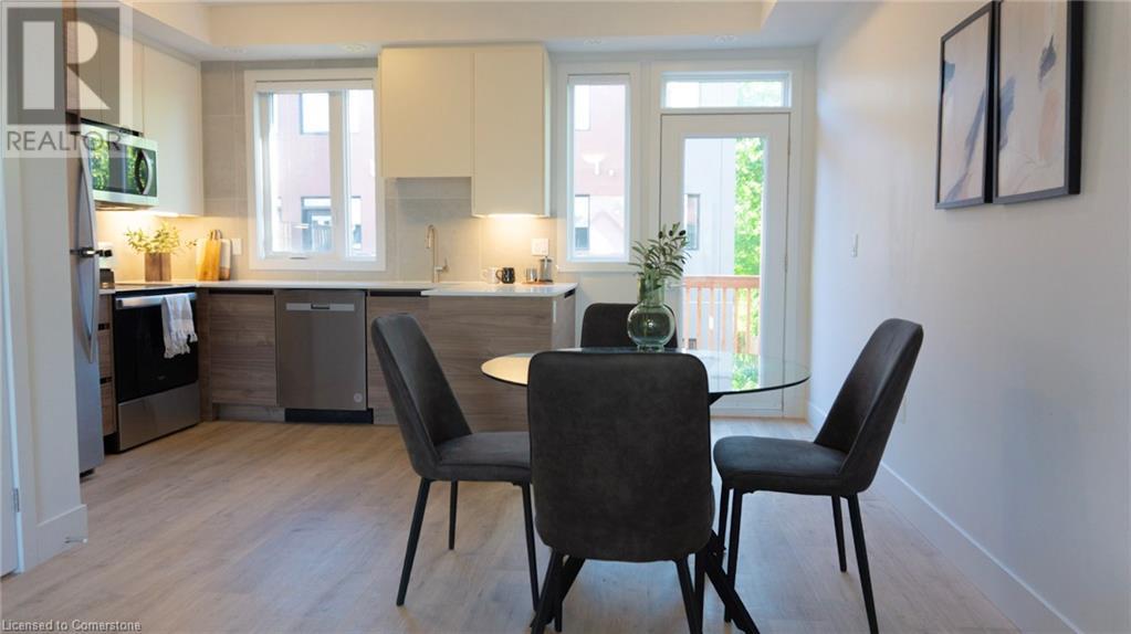 Welcome to The Lawson Towns – a brand-new collection of 2- and 3-bedroom stacked townhomes located in Hamilton’s historic district. Unit 5 features a bright, open-concept layout with either a private balcony or a fenced backyard, offering the perfect blend of comfort and style. Enjoy Bell high-speed unlimited internet included, with optional cable and phone packages available. Outdoor parking is available on-site, with electric vehicle charging in the works. The home is equipped with a high-velocity HVAC system for consistent climate control year-round. Modern finishes include a contemporary kitchen with a dishwasher, a vented over-the-range microwave, and convenient in-suite laundry. Ideally situated near public transit, McMaster University, Mohawk College, major hospitals, Highway 403, and the QEW. You're also just minutes from Ottawa Street’s popular restaurants, cafés, and shops, as well as Tim Hortons Field. Gage Park is just steps away, offering lush green space, a fountain, greenhouse, museum, sports facilities, and a playground. The Lawson Towns offer more than just a place to live – they offer a community designed for your lifestyle. Please note: Photos are of the model suite and are used for marketing purposes only. Actual features and finishes of Unit 5 may differ. (id:52163)