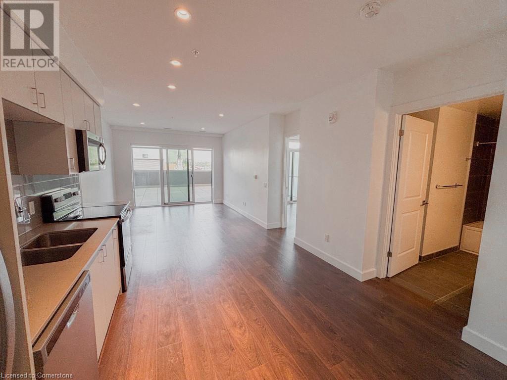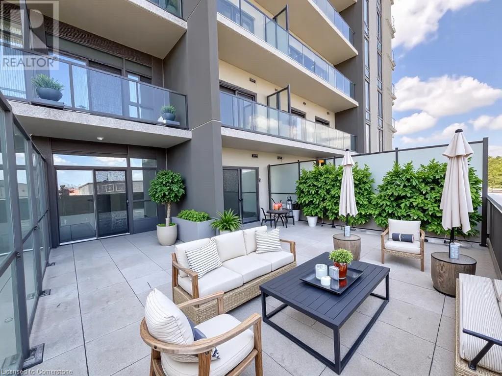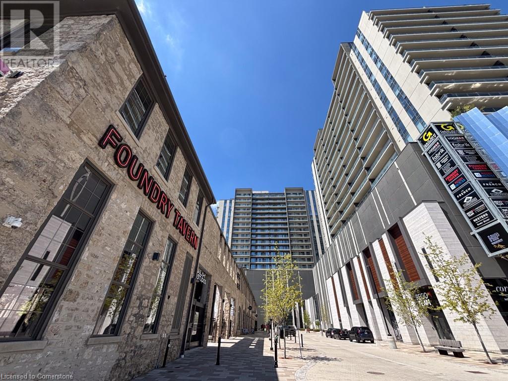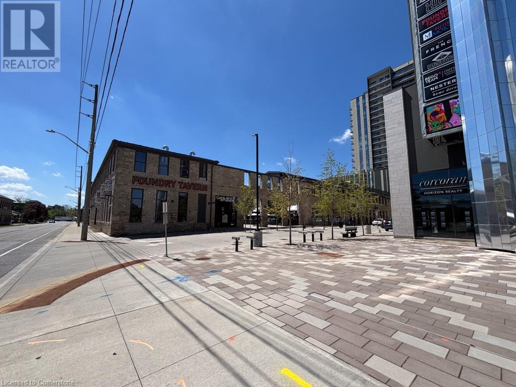 Live the ultimate outdoor life style at the Gaslight District – with a massive private outdoor terrace facing the Hamilton Family Theatre and views of the Grand River! Discover urban sophistication in the heart of Cambridge’s vibrant and historic Gaslight District. This one-bedroom, one-bathroom condo offers an unbeatable combination of modern finishes, lifestyle amenities, and an incredible private terrace with panoramic views of downtown Galt and the city skyline. Step into a bright and open living space featuring floor-to-ceiling windows, high ceilings, and wide plank laminate hardwood flooring throughout. The upgraded kitchen is designed for both style and functionality, showcasing modern grey cabinetry, quartz countertops, a double sink, stylish backsplash, and stainless steel appliances—including a built-in microwave and dishwasher. The spacious bedroom includes a walk-in closet with a decorative sliding barn door, while the sleek 4-piece bathroom also houses the in-suite laundry for added convenience. What truly sets this unit apart? The enormous private terrace—perfect for entertaining, relaxing, or simply enjoying the view. Residents enjoy access to an array of upscale amenities shared between the two towers: Rooftop lounges and party rooms, Outdoor terraces with seating areas, BBQs, fire pits, and hammocks, A fully equipped gym and yoga studio and Meeting and study rooms. Conveniently located on the same floor as most amenities, this unit makes it easy to enjoy everything this exceptional building has to offer. It also includes underground parking with an EV charger—a rare and valuable feature. Enjoy the lifestyle that Gaslight District condos has to offer with Foundry Tavern, The French, The Underwing, Pizzeria Motola, Live Music, Events and Outdoor Movie Screenings and so much more! Surrounded by dining, entertainment, trails, shopping, schools (University of Waterloo School of Architecture), and the scenic Grand River. (id:52163)