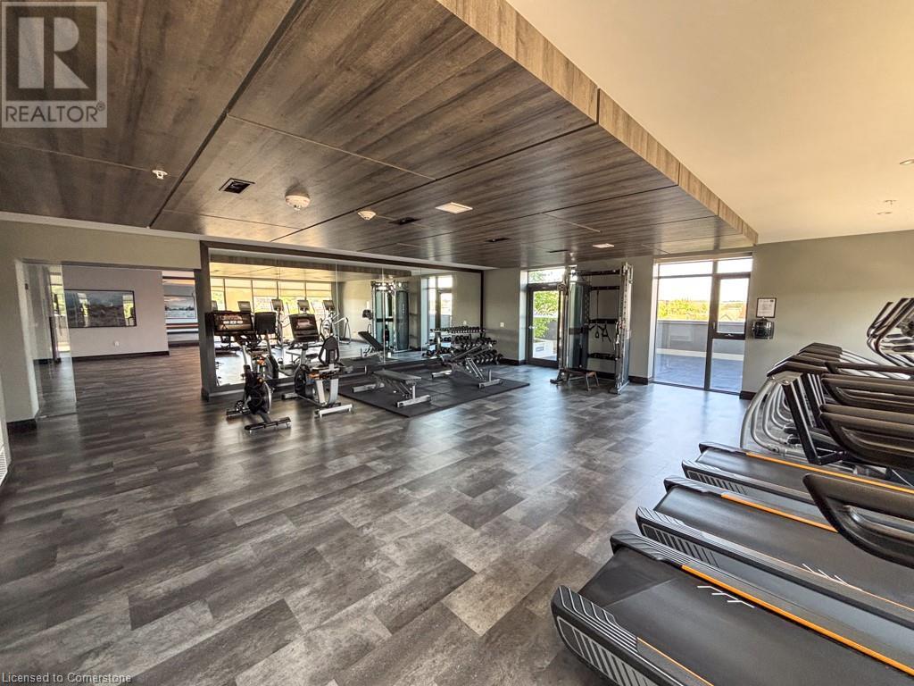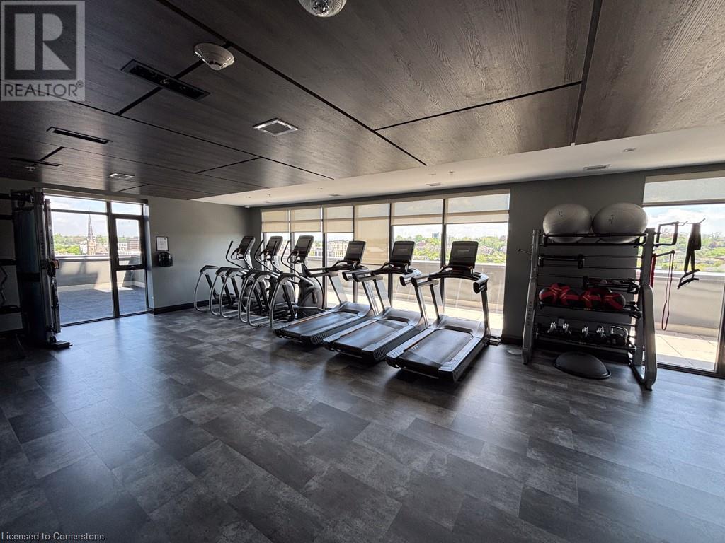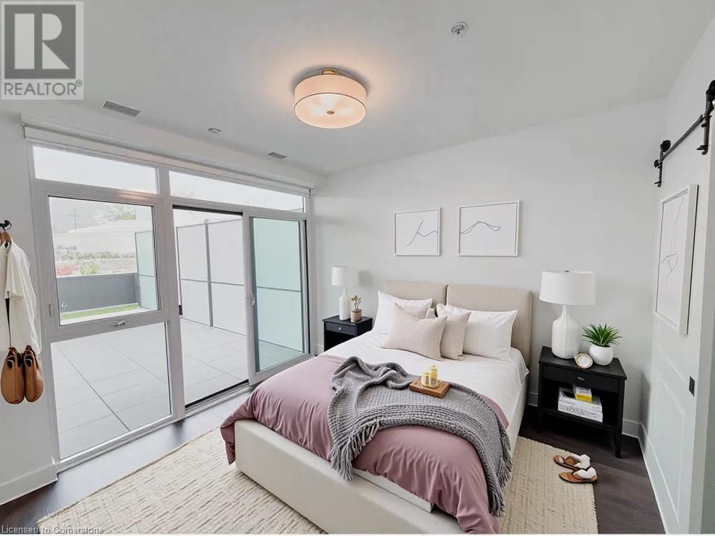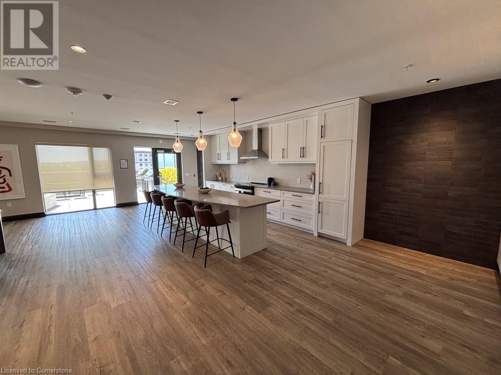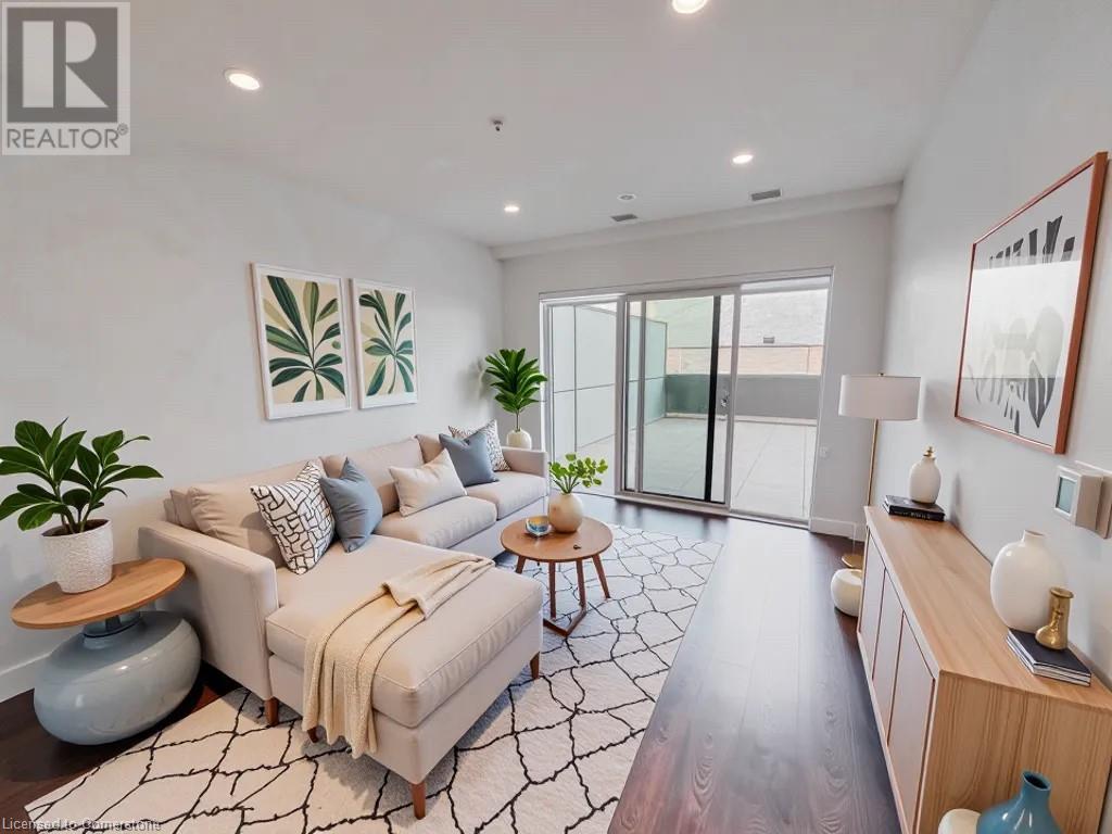 Live the ultimate outdoor life style at the Gaslight District – with a massive private outdoor terrace facing the Hamilton Family Theatre and views of the Grand River! Discover urban sophistication in the heart of Cambridge’s vibrant and historic Gaslight District. This one-bedroom, one-bathroom condo offers an unbeatable combination of modern finishes, lifestyle amenities, and an incredible private terrace with panoramic views of downtown Galt and the city skyline. Step into a bright and open living space featuring floor-to-ceiling windows, high ceilings, and wide plank laminate hardwood flooring throughout. The upgraded kitchen is designed for both style and functionality, showcasing modern grey cabinetry, quartz countertops, a double sink, stylish backsplash, and stainless steel appliances—including a built-in microwave and dishwasher. The spacious bedroom includes a walk-in closet with a decorative sliding barn door, while the sleek 4-piece bathroom also houses the in-suite laundry for added convenience. What truly sets this unit apart? The enormous private terrace—perfect for entertaining, relaxing, or simply enjoying the view. Residents enjoy access to an array of upscale amenities shared between the two towers: Rooftop lounges and party rooms, Outdoor terraces with seating areas, BBQs, fire pits, and hammocks, A fully equipped gym and yoga studio and Meeting and study rooms. Conveniently located on the same floor as most amenities, this unit makes it easy to enjoy everything this exceptional building has to offer. It also includes underground parking with an EV charger—a rare and valuable feature. Enjoy the lifestyle that Gaslight District condos has to offer with Foundry Tavern, The French, The Underwing, Pizzeria Motola, Live Music, Events and Outdoor Movie Screenings and so much more! Surrounded by dining, entertainment, trails, shopping, schools (University of Waterloo School of Architecture), and the scenic Grand River. (id:52163)