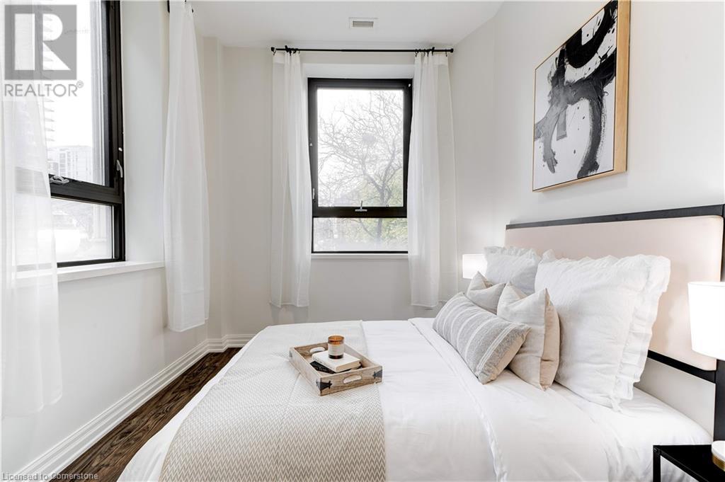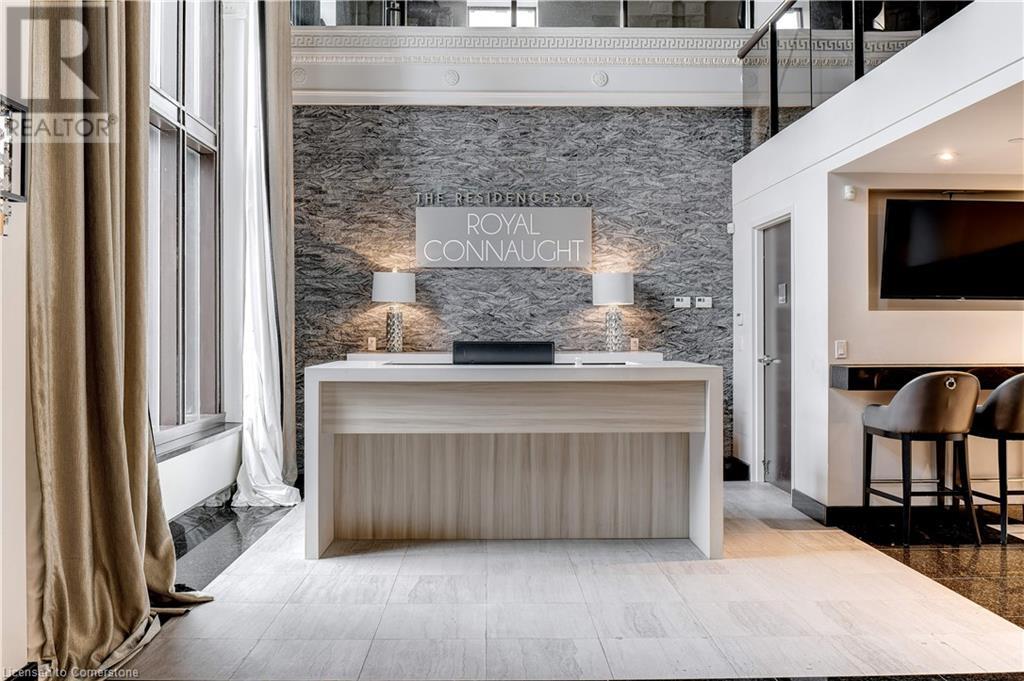 Luxurious living in one of Hamilton's most prestigious buildings. The Residences of the Royal Connaught! This spacious and sunlit 2 bedroom, 2 bathroom, corner unit offers open concept living with views of Downtown from every room. Soaring 10' ceilings, oversized windows, and upgrades galore. Fantastic location - Steps to Hamilton GO Station, James St. N., patio-line King William St, the Art Gallery Farmer's Market, and all that Downtown living has to offer. Unit includes use of an underground parking space and storage locker. Tenant to pay all utilities. (id:52163)