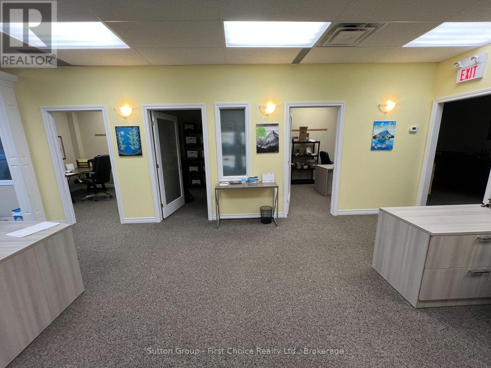 1250sq ft of Office Space in a very well-managed and clean strip mall across from the Stratford Festival Marketplace. Located on the main street in Stratford and surrounded by amenities, this space is move-in ready. There is a private entrance with a closet, 3 private office spaces, an open working area, a board room, a kitchenette, a private bathroom and storage. There is common parking and signs on the exterior of your space as well as a pylon sign on the main street. Available February 1, 2025. (id:52163)