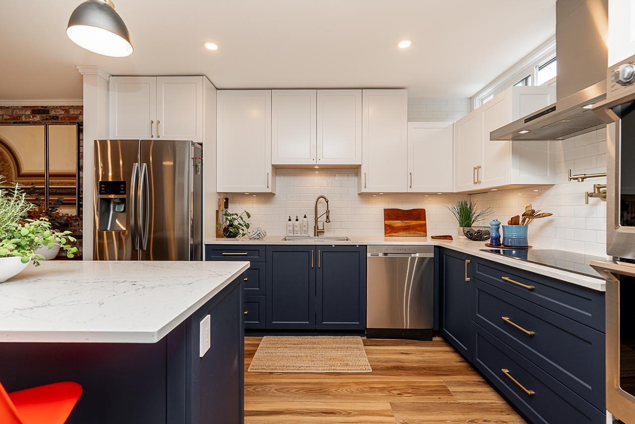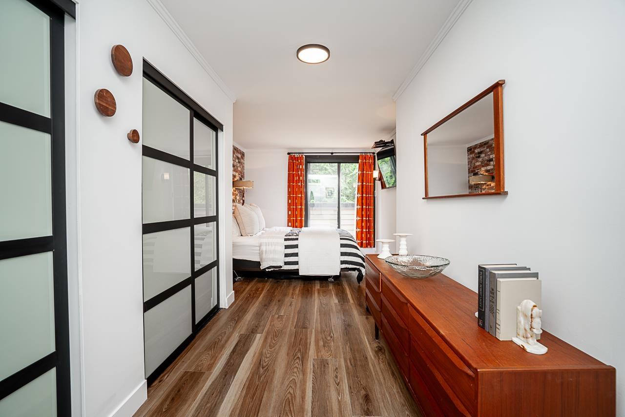 Impeccably renovated condo in Nico Wynd Estates! This 2 bedroom + den, 2 bathroom home blends mid-century modern style with a New York loft aesthetic featuring high end finishes and abundant natural light in a serene park like setting. The chef's kitchen impresses with quartz counters, a large island, double ovens, induction range, pot filler and beverage fridge. Deluxe primary suite with private deck and spa ensuite. Enjoy in-floor heating, luxury vinyl plank flooring, real brick feature walls, custom glass and railings, Dolby Atmos home theatre wiring, new decks, blinds, paint, new appliances & more. Pet friendly and all ages are welcome! Includes golf membership and access to fitness, pool, hot tub, tennis, pickleball, marina, walking & bike trails, licensed restaurant & more. Resort style living on 76 acres! (id:63033)